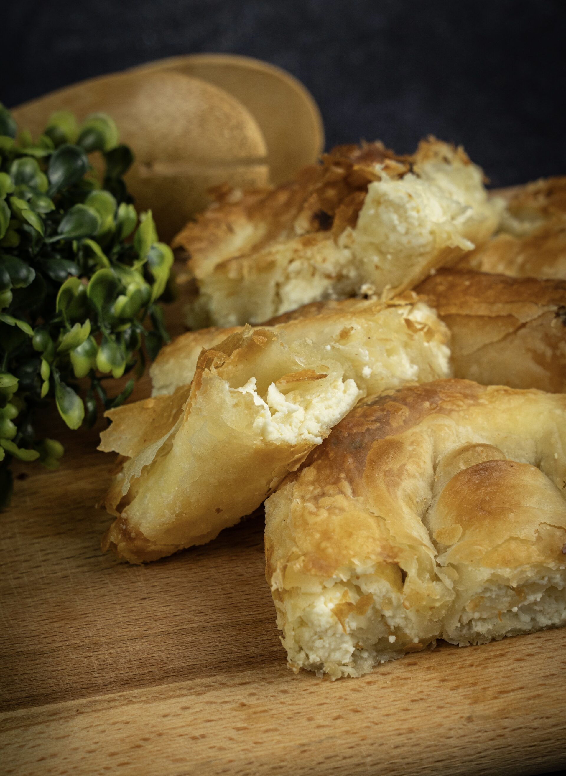 Ručno mesimo, pa pažljivo razvlačimo svaki list naših domaćih pita preko stola, zatim ide fil u savršenoj meri, da probudi sva Vaša čula , pa u rernu i direktno za Vaš sto - topla, sočna i hrskava Dadina pita.